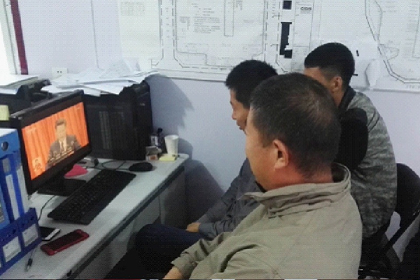 建安5123导航通五湖鄂尔多斯康巴什新区第二热源厂项目部组织员工收看党的十九大开幕盛况